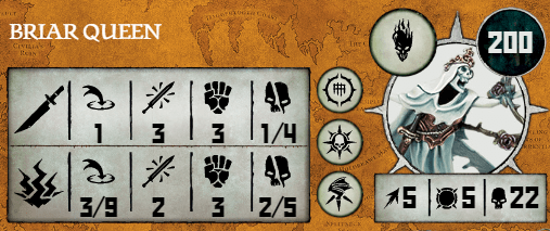 General plan – The main thing this list wants to do is keep the numbers up, keep your Briar Queen safe (try to use as much of her 9″ range as possible) and every turn you have access to high triple use Vortex or resurrect one of your fighters with either Briar Queen or King Morlak Velmorn (his sons are raised by him with full health). If you will have any spare doubles then your allied Grave Guards could be supercharged with Shambling Horde or Sibling Rivalry