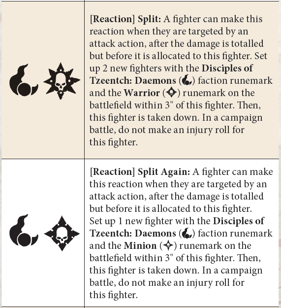 Split – in this guide we are assuming that TO is accepting Split reaction to be used on your Iridescent Horror, but as at the moment of writing this the runemark is not yet fixed (and is an obvious mistake as no fighter in faction have the runemark required to use split reaction). Contact TO before the tournament that you will be able to use this reaction.