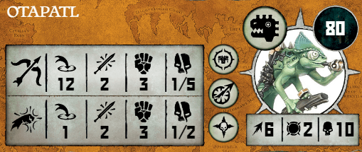 Ranged critfishing – One of the best aspects of this warband is their ranged damage potential. Especially fighters from Hammer (Kixi-Taka and Otapatl) can inflict significant damage with some lucky crits thanks to critical damage of 5 and 6. Usually giving luck a chance require the risk of getting close to the opponent but this warband has 2 fighters with 12″ range and 2 others with 8″ and 7″ of range, so you can fish for sixes from relatively safe distance. The other great aspect is that it’s hard for opponents to “hide in combat” as due to not having minimal range 3 out of your 4 shooters can continue shooting to enemy engaged in melee by your fighters if you come within 3″ of the target.