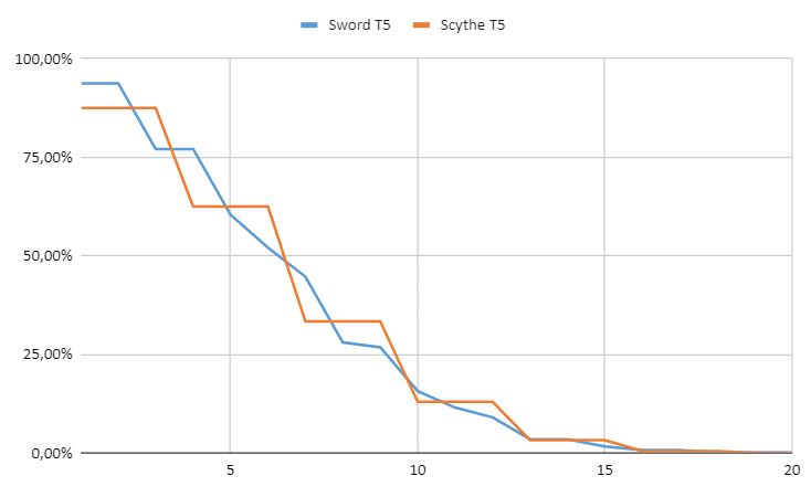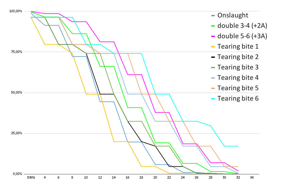 Identity of some factions could be build around this new damage strategy and it actually fits perfectly with both the lore and expected behavior of elves or “elf like characters” (like for example Slanesh). Let me close this point with an example – lets say you want an expensive hero that should be able to oneshot a chaff unit, lets say DPA4 = 10 (on average deals 10 damage to T4). Currently in the game it basically mean that you get a fighter with a “classic” profile like 3A 5+S 4/8, 4A 5+S 3/6 (5A 5+S 2/6 or 5A 4S 3/6 also work, but this profiles basically doesn’t exist now, at least without using abilities). With 5+ crit you can add more profiles with the same average damage to the list. For starters the 2 attack profiles can suddenly work now: 2A S8+ 5/10 (ways of getting bonus attacks for such profiles should be restricted of course). With 3 attacks we can add 3A S8+ 3/7, which looks like healthier “version” of mentioned 3A 4/8 profile as it deals less damage to durable opponents, is less consistent at oneshoting chaff and has some counterplay (buffing Toughness to escape 5+ crit range). There are some alternatives for 4 and 5 attacks, but lets jump over them to a very “elvish” profile of 6A S8+ 1/4. It deals similar average damage to previously listed profiles, but significantly drops against high Toughness. It has some spike potential and in my opinion fits perfectly to something like elvish hero. The more I thought about this concept the craziest design opportunities I found. This simple mechanic lets you build fighters that grow in power against stronger enemies, for example S8 4/2 profile deals more damage against Toughness 5-7 than it does against 1-4. Similarly you can use low Toughness of elf like profiles that would make using 5+ crit against them less potent with reactions. For example a faction with T4 chaff (lets assume minion runemark) and T5 bigger guys could have this reaction: