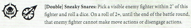 Secondary threats – Fortunately the list isn’t as one dimensional as the paragraph above suggests and is full of other threats that can have great impact on the game. Not only there are 2 additional big threats in from of Ardboy Boss and Killaboss, but even the smallest fighters here can ruin opponent plans with Shank’s Sneaky Snares double, which is the strongest net ability in the whole grand alliance and a trap from Bushwakka that deal 2D6 damage which is insane for only a double.