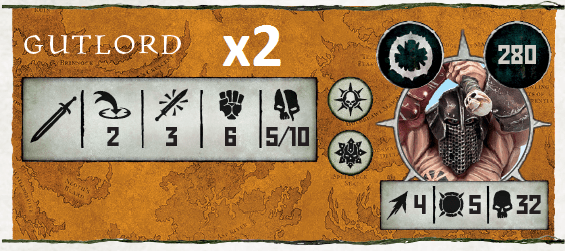 Hrothgorn artillery – The center of gravity in this list is certainly Hrothgorn Crossbow. Putting this Ogor in Kruleboyz creates very interesting situation where Gutrippas (and Shank/Killaboss) positioned within 3″ of Hrothgorn can respond to enemy movement nearby with Kunnin’ Trap reaction and use powerful S6 4/8 ranged attack against approaching enemies. Additional ways of generating extra crossbow attacks comes from Quiv triple – Here You Go, Boss! and in case Hrothgorn kills someone – Might Makes Right!.