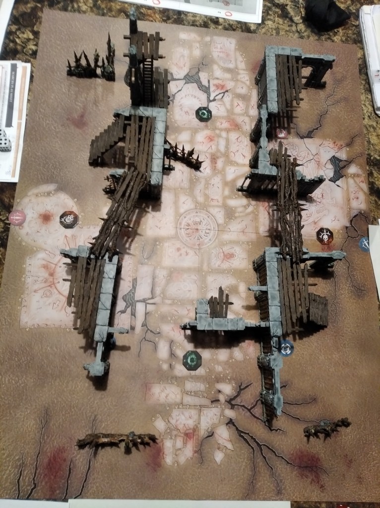 I played on the same table as previously, the only difference in objective position was that our home objectives moved 2” towards the center of the board.